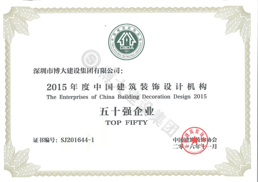 2015年度中國建筑裝飾設計機構50強企業