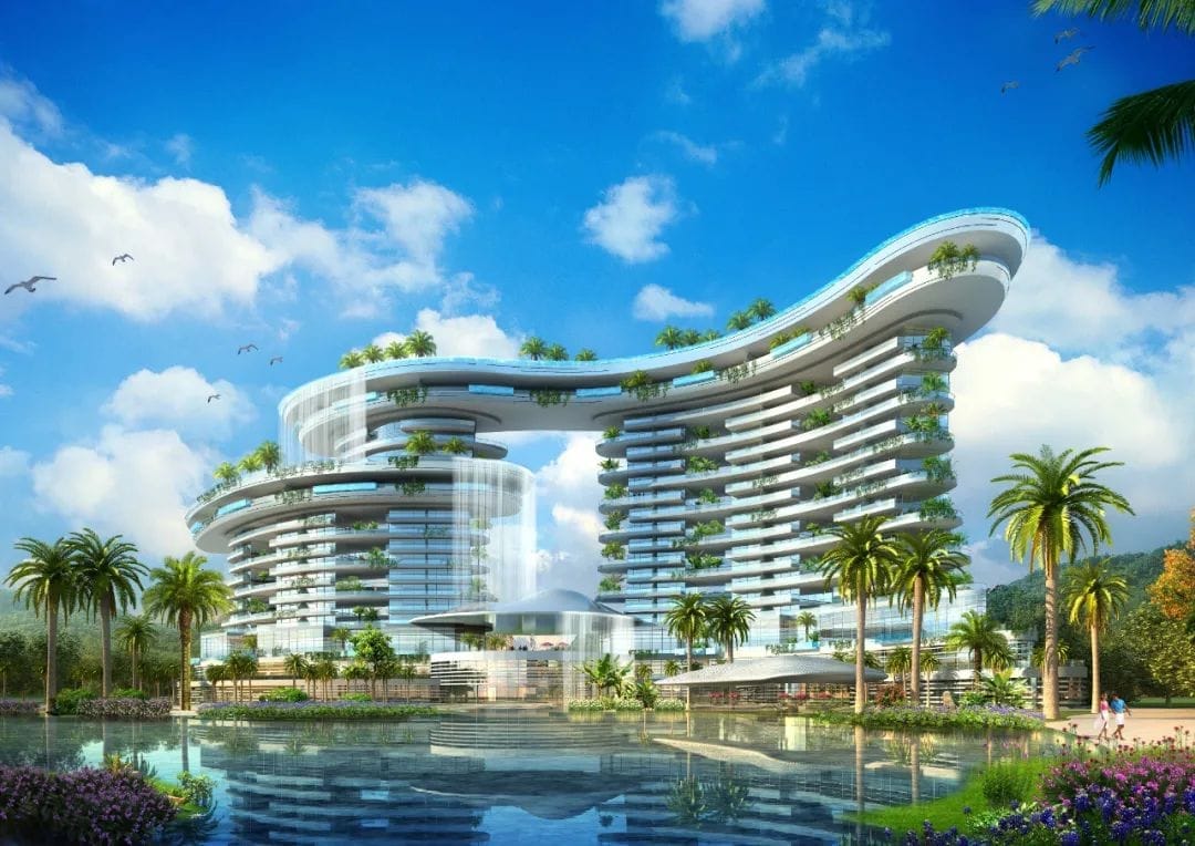 三亞國美酒店項目位于三亞市海棠灣C6片區D-3-4地塊,占地面積13.4萬㎡,建設內容包括1棟酒店、97棟可售低層度假酒店、1套總統套房和3套副總統套房等,總建筑面積近14萬㎡。海棠灣位于三亞市東北部海濱,與亞龍灣、大東海灣、三亞灣、崖州灣并列三亞五大名灣。